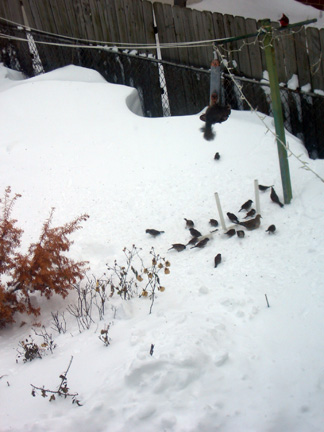 Just a few pictures of the pleasure of having a bird feeder in your yard through the winter months. It keeps the cat and me busy staring out the window. The Audubon provides some insight and considerations on the issue of whether you keep a feeder or not.