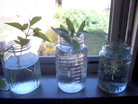 Rosemary, an herb for remembrance. The scent calms the nerves. In aromatherapy, it promises love, optimism, and a good nights sleep. Perhaps you got a small shrub during the holiday season and you’ve been snipping off pieces here and there to cook with. While you’re at it, snip off a few longer stems and set in a jar of water to root. Over a few weeks time, the cutting will have enough roots to plant in soil. Nurture inside on a sunny window til after the fear of frost, and then transplant outdoors.